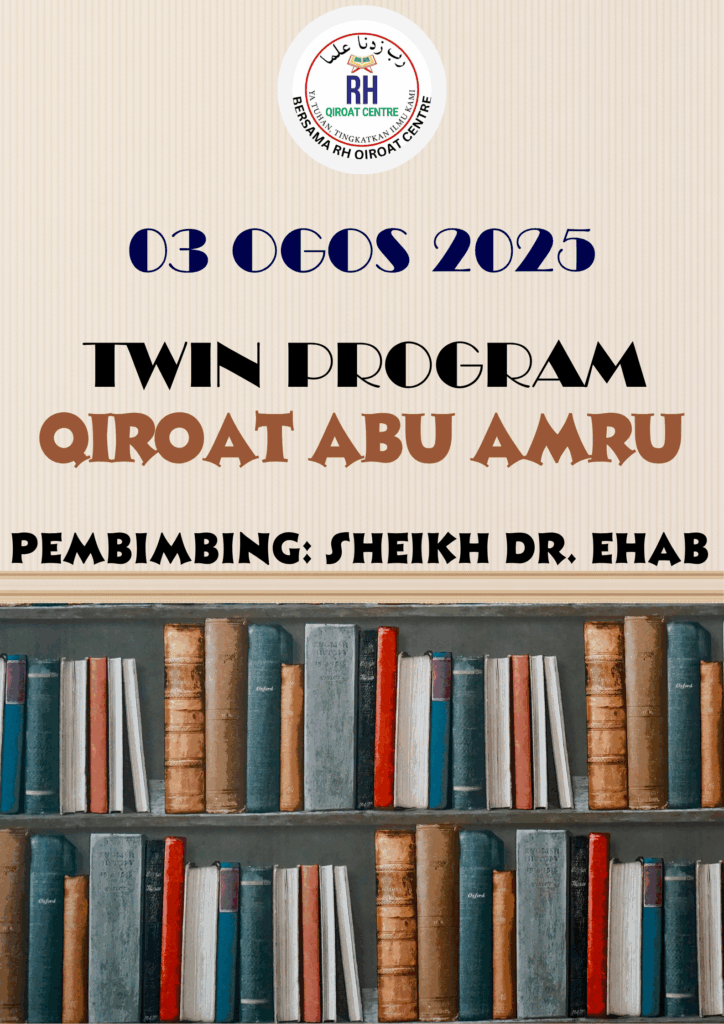 03 Ogos 2025, kelas Qiroat Abu Amru akan memulakan kelas pertama dibawah bimbingan Sheikh Dr. Ehab.