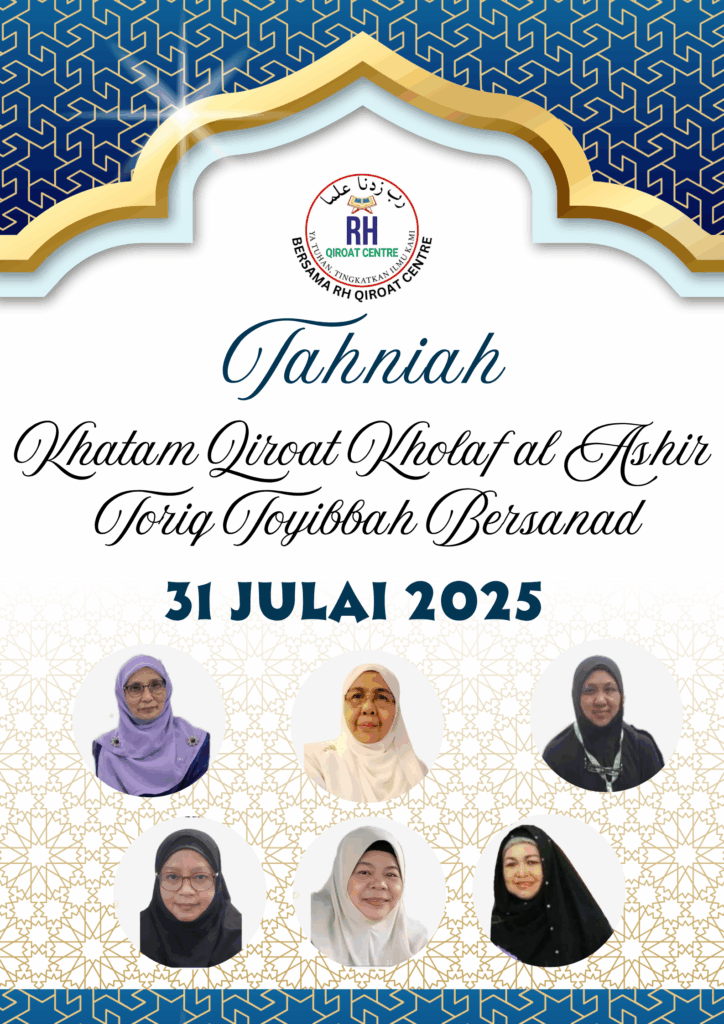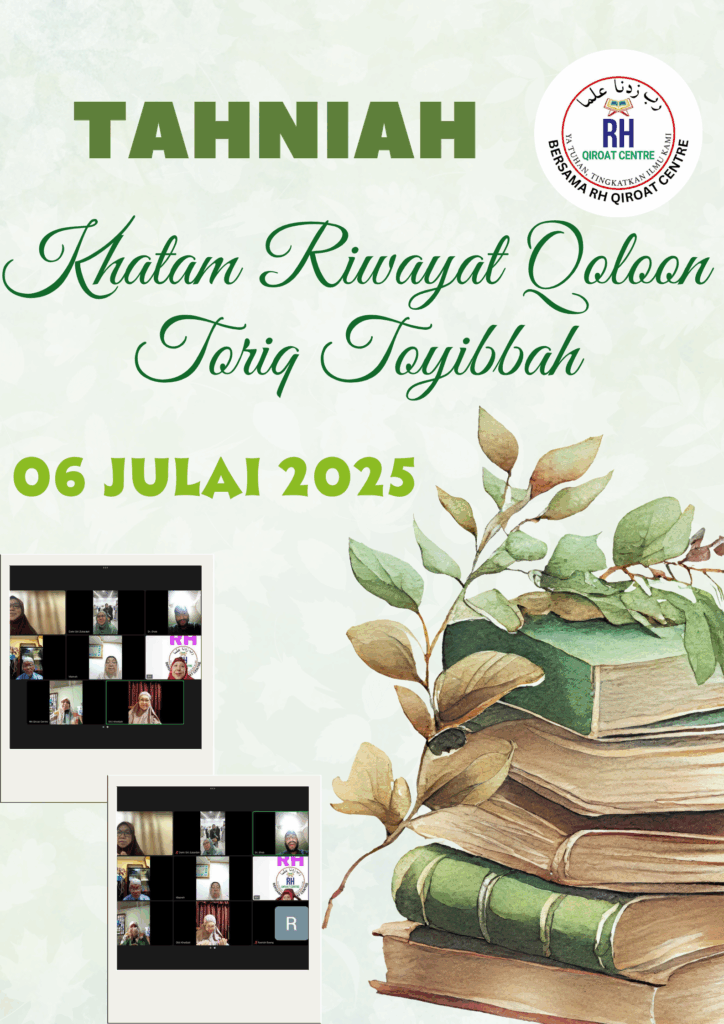 Pada 06 Julai 2025, RH Qiroat Centre telah mengadakan majlis khatam bagi Riwayat Qoloon Toriq Toyibbah secara atas talian.