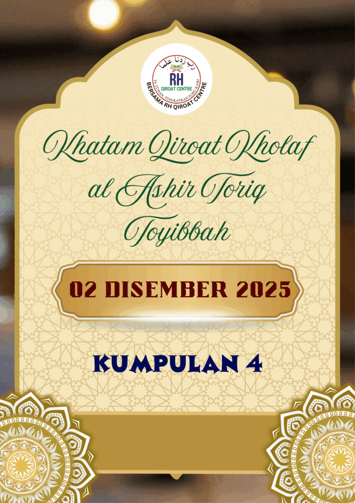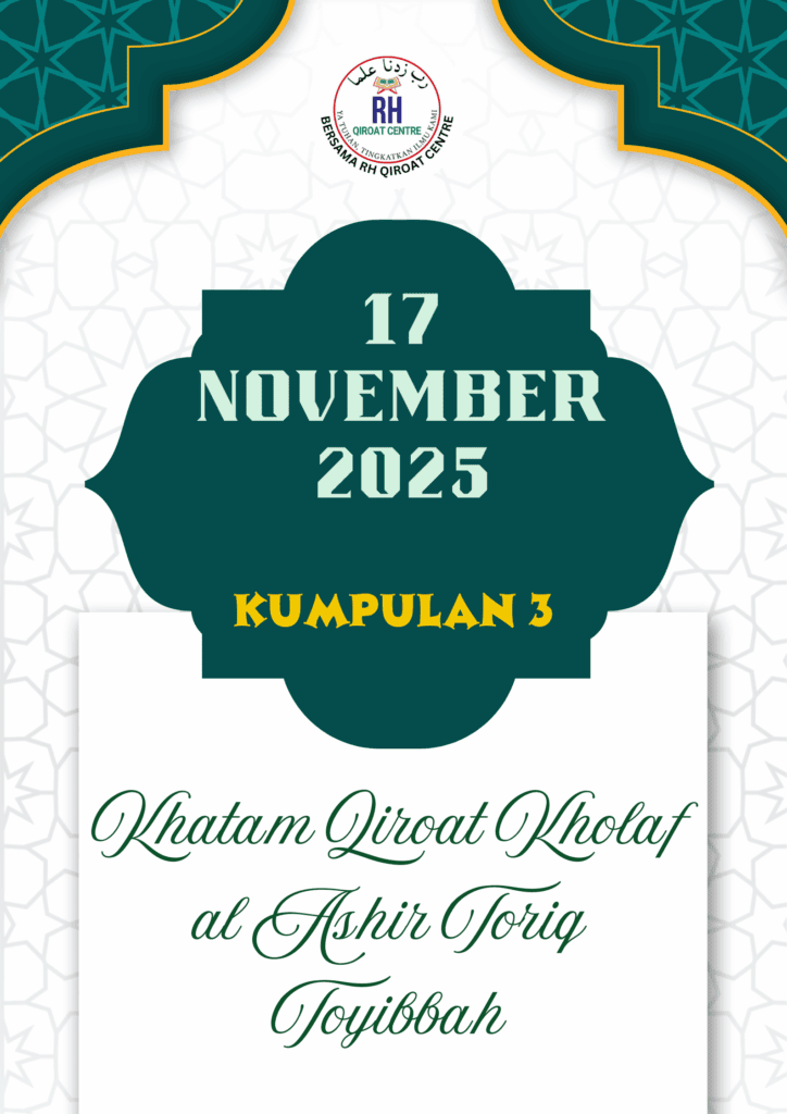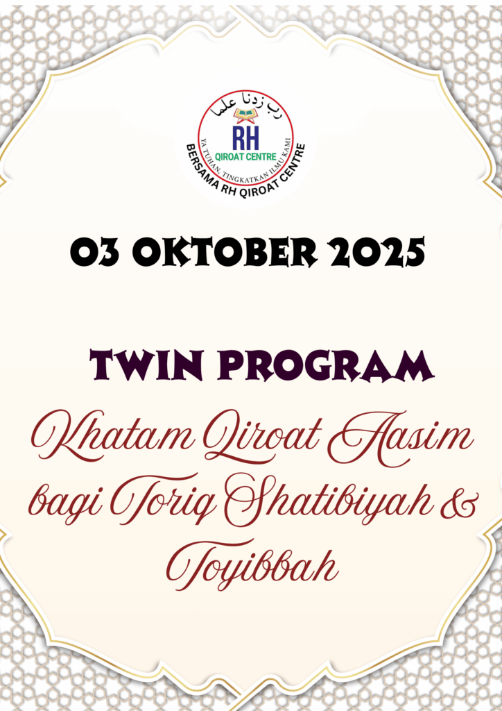 Pada 03 Oktober 2025, RH Qiroat Centre telah mengadakan majlis khatam bagi Qiroat Aasim kumpulan pertama secara atas talian.
