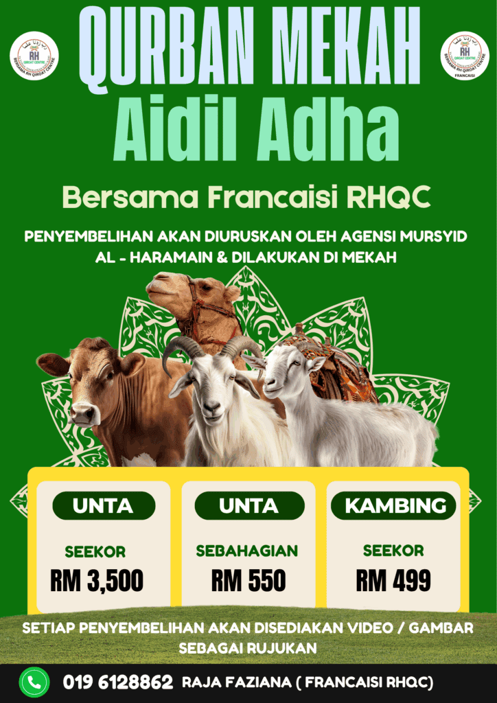 RH Qiroat Centre bersama Francaisi RHQC telah bekerjasama dengan pihak Mursyid al Haramain dengan menawarkan tawaran "Qurban Mekah". Penyembelihan akan diuruskan oleh pihak agensi sendiri di Mekah dan akan menghantar video/gambar kepada peserta sebagai bahan bukti.