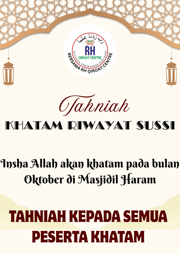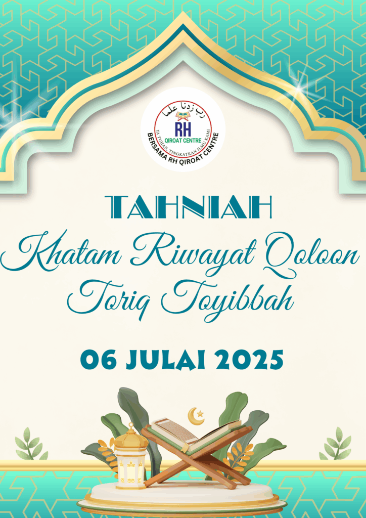 RH Qiroat Centre ingin mengucapkan "Selamat Tahun Baru Hijriah 1447 H" kepada seluruh umat Islam. Semoga Allah s.w.t menambahkan keimanan, pengetahuan, rezeki dan keampunan kepada kita semua.